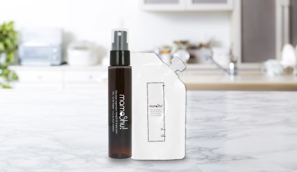 マモッシュはこのようなシンプルなボトル設計で、無香料・次亜塩素酸水タイプの消臭スプレーです。