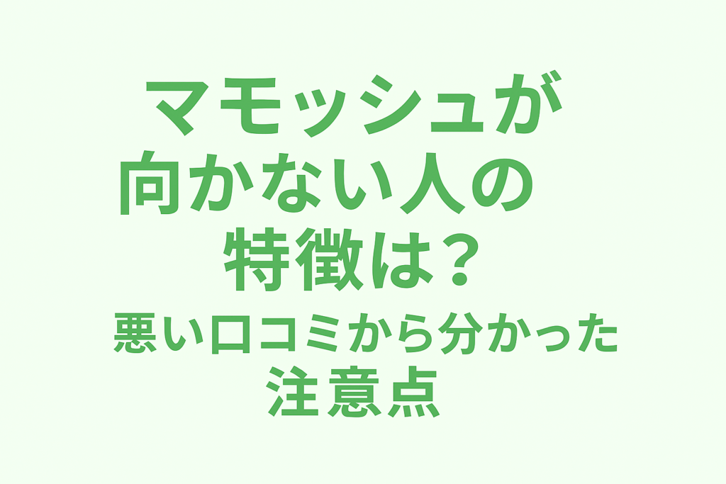 「マモッシュ 悪い口コミ」を調べている人の中には、 「自分には合わない商品だったらどうしよう」と不安に感じている方も多いはずです。 ここでは、口コミや商品特性をもとに、マモッシュが向かない可能性がある人の特徴を正直に解説します。 【マモッシ... -